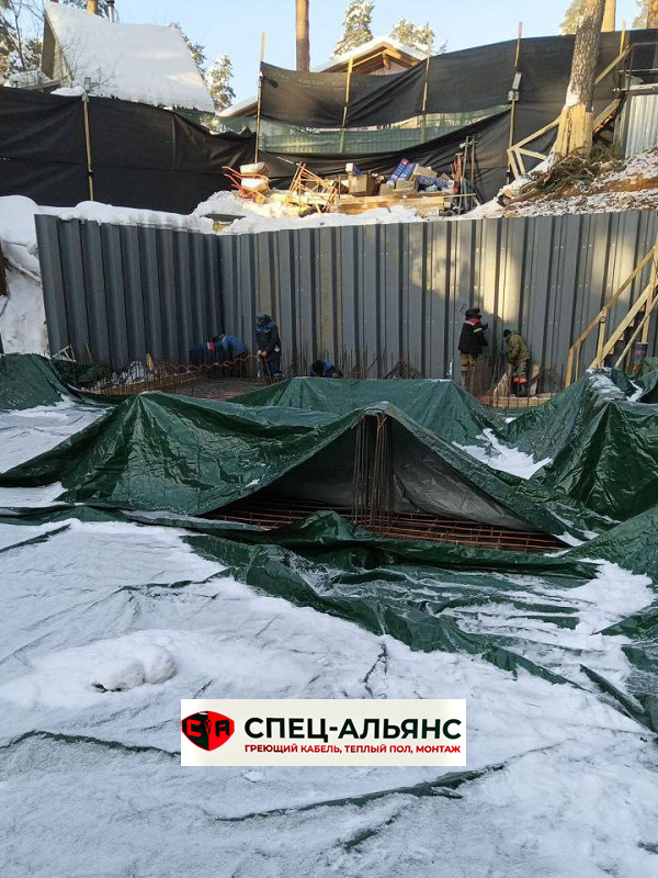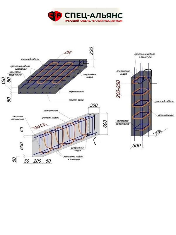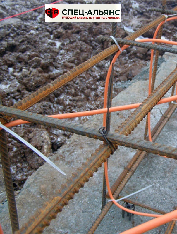 Заливка бетона: Убедитесь, что греющая часть кабеля будет полностью погружена в смесь, чтобы исключить перегрев на воздухе.