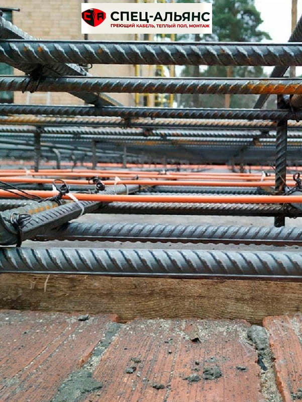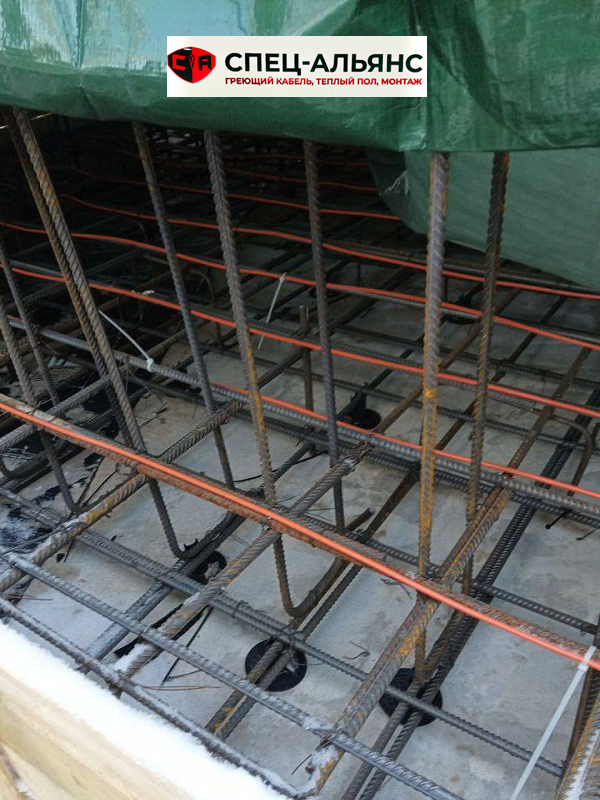 Подготовка конструкции: Кабель укладывается на арматурной сетке или каркасе. Рекомендуемый шаг укладки рассчитывается исходя из необходимой мощности на кубометр бетона.