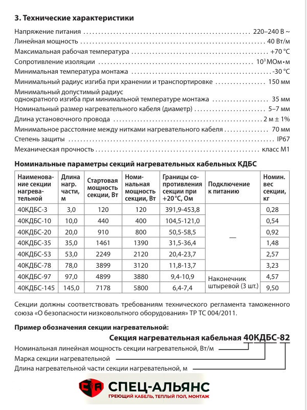 Мощность: 40 Вт/м. Высокая удельная мощность позволяет эффективно прогревать бетон и ускорять его твердение даже при отрицательных температурах.